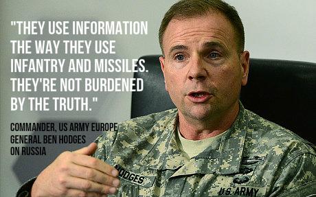 "Há uma ameaça russa", Hodges disse ao Telegraph , sustentando que a Rússia está envolvida no conflito no leste da Ucrânia.